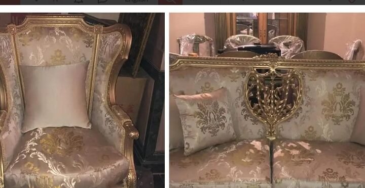 صالون بحاله فوق الممتازه للبيع فرش جديد. متكون من كنبه و ٤ كرسي صالون.