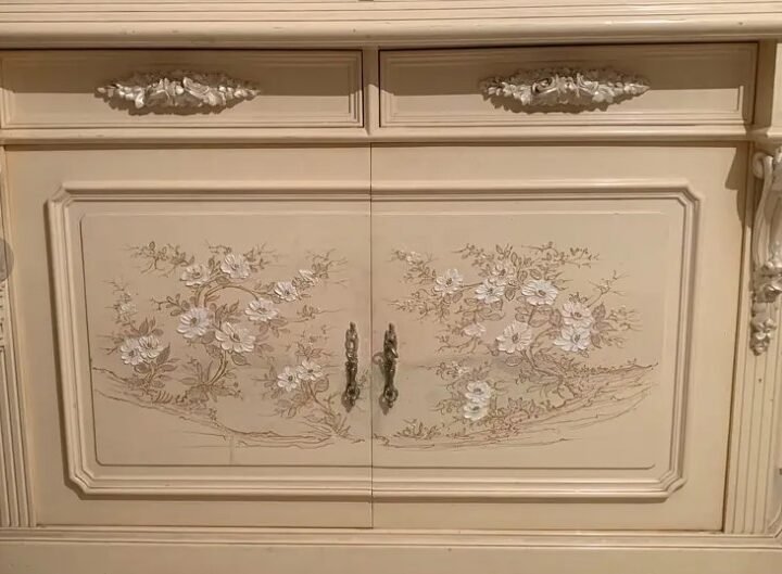 غرفة سفرة خشب طيبعي لاكيه ابيض مرسوم بانتير